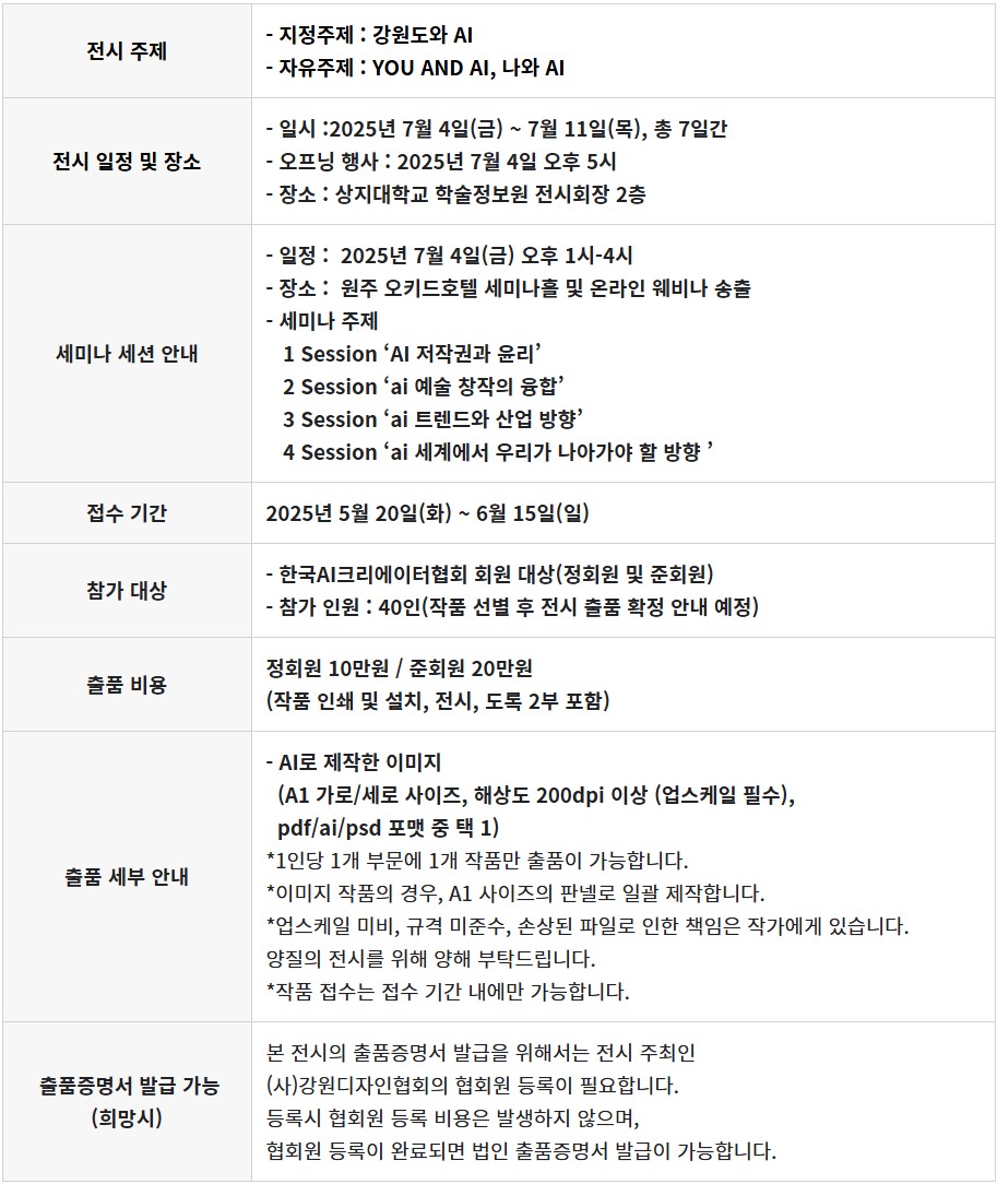 Çѱ¹AIÅ©¸®¿¡ÀÌÅÍÇùȸ°¡ ¿À´Â 7¿ù °¿øµðÀÚÀÎÇùȸ¿Í ÇÔ²² Àü½Ã¸¦ °³ÃÖÇÕ´Ï´Ù.